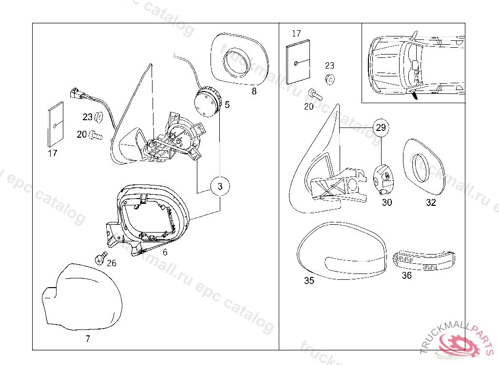 MIRROR WITHOUT CASING AND WITHOUT MIRROR GLASS,AUTOMATIC DIMMING,LEFT, A 289560 X 754620 EXCEPT CODE 801 ALSO INSTALLED IN VEHICLE TO A 289559, X 754619 WITH CODE 802