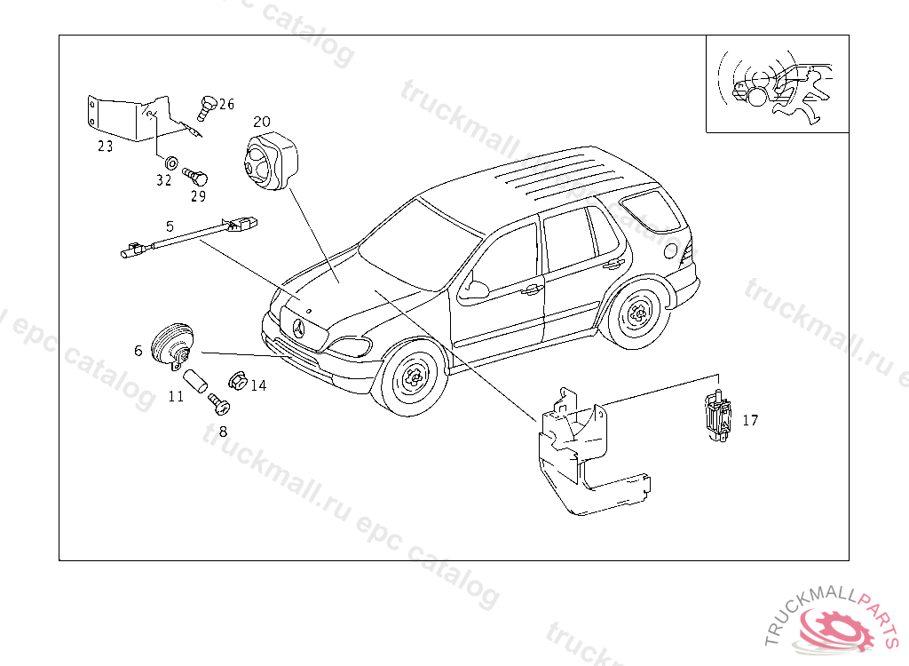 ALARM SYSTEM SIREN, F 080359 EXCEPT CODE 808 ALSO INSTALLED IN VEHICLE TO F 080358 WITH CODE 809