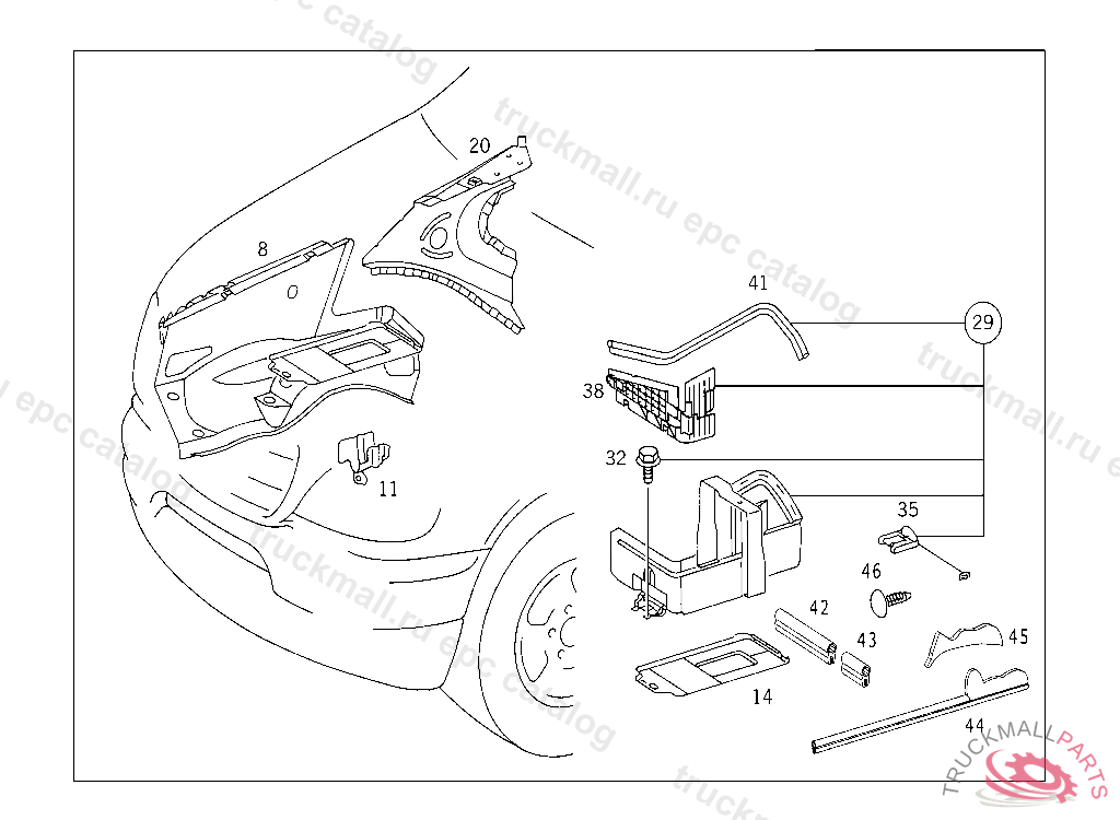 WHEELHOUSE RIGHT, UP TO IDENT-NO. A145272 ORDER ADDITIONALLY ALSO: 1X A 163 626 04 14 UP TO IDENT-NO. X707755 ORDER ADDITIONALLY ALSO: 1X A 163 626 04 14