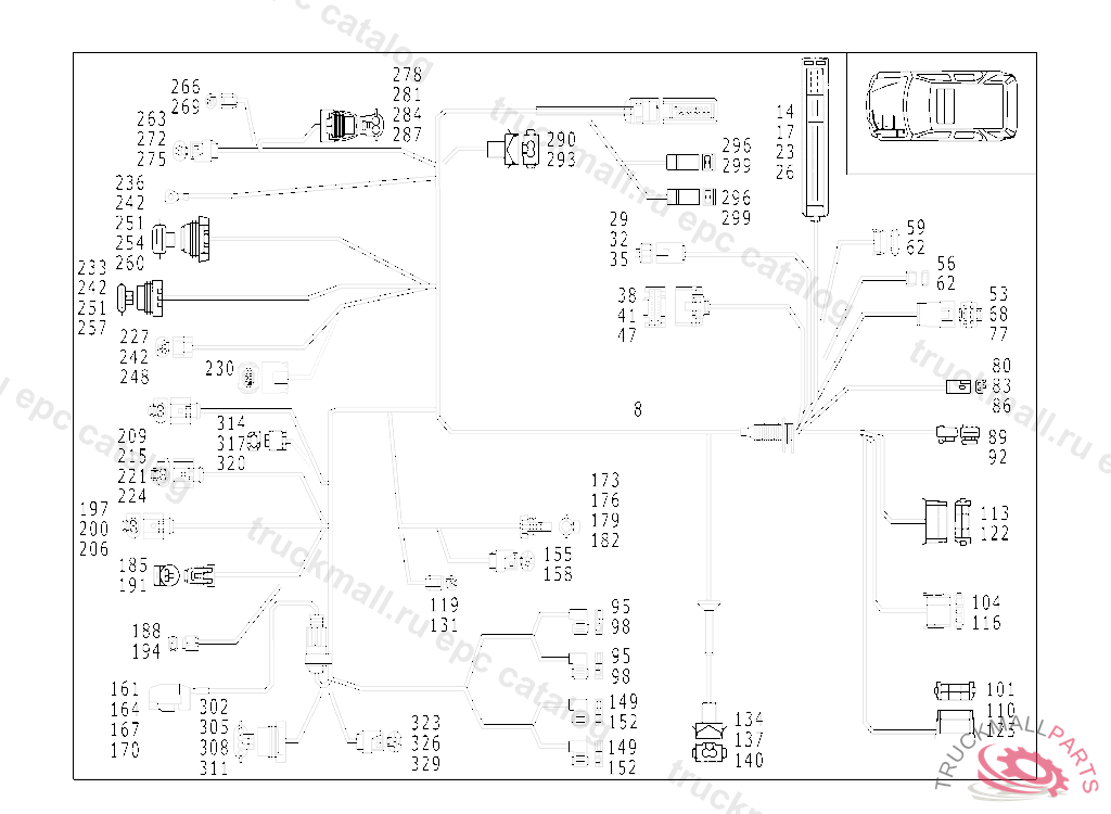 7. 121 ENGINE CABLE HARNESS,BODY MOUNTED IL. 1