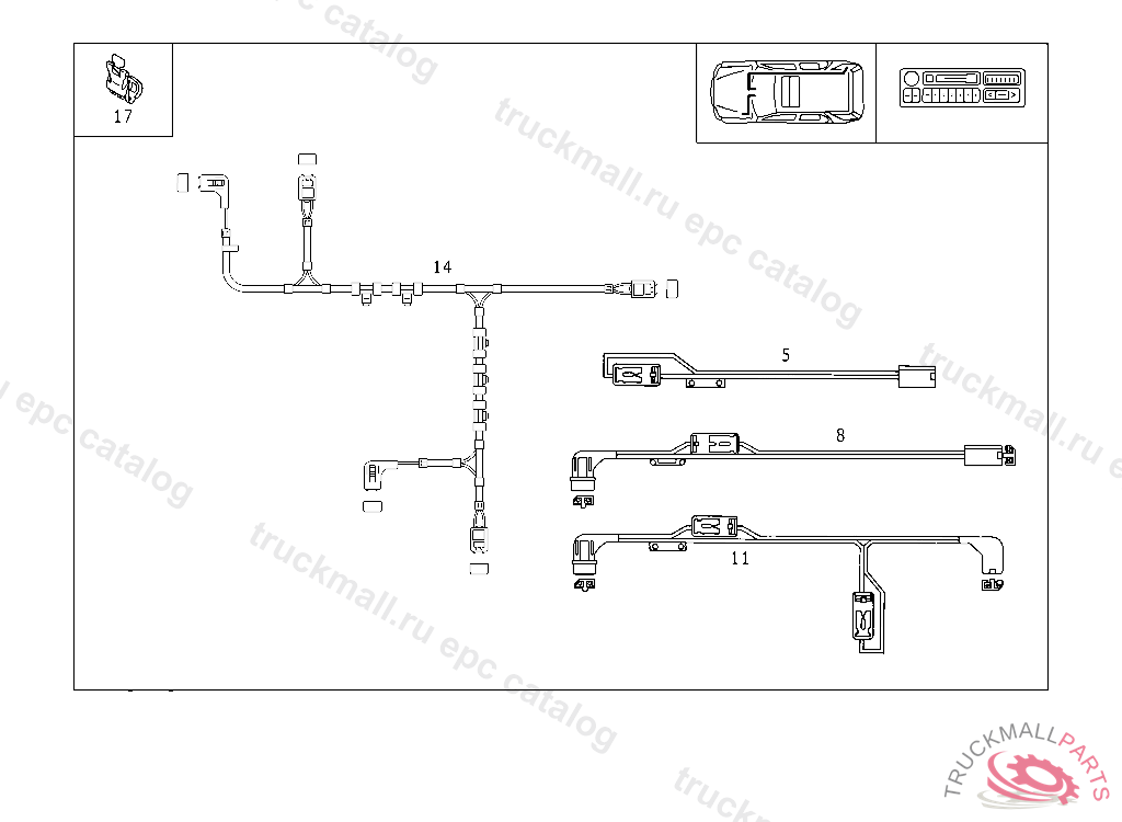 ELECTRIC CABLE RADIO-EMERGENCY CALL SYSTEM-CD-CHANGER, A 289560 X 754620 EXCEPT CODE 801 ALSO INSTALLED IN VEHICLE TO A 289559, X 754619 WITH CODE 802 CONNECTORS MUST ALSO BE ORDERED IN ACCORDANCE WITH THE TOTAL LINE CROSS-SECTION TO BE CONNECTED.REFER TO WIS FOR REPAIR INSTR. SOLDERED CONN.SLE.A 001 546 99 41GREEN 0,7 - 2,4 MM2 A 002 546 00 41RED 2,0 - 4,0 MM2 A 002 546 01 41BLUE3,5 - 8,0 MM2 A 002 546 11 41YELLOW7,5 - 12,0 MM2 BUTT JOINTA 002 546 13 410,5 MM2 A 002 546 14 410,8 MM2 A 002 546 15 411,3 MM2 A 002 546 16 412,0 MM2 A 371934 X 778320 EXCEPT CODE 803 ALSO INSTALLED IN VEHICLE FROM A 371935 WITH CODE 802A444900 IMPORTANT! ORDER PART NUMBER WITH ES1: 98