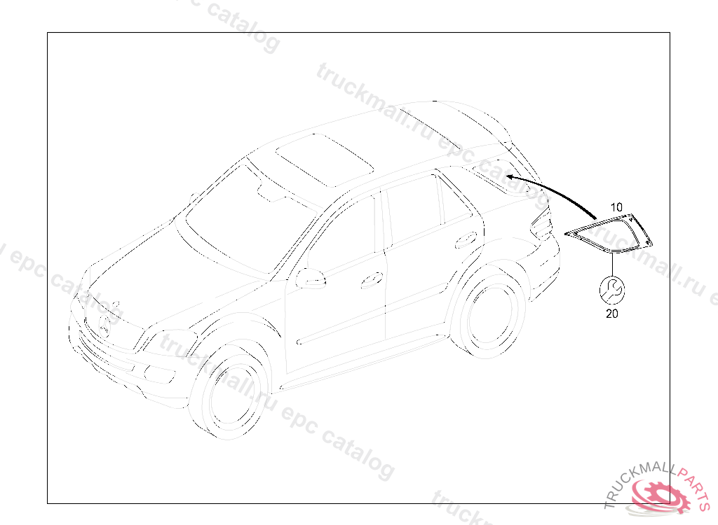 SIDE WINDOW LEFT REAR SIDE WINDOW, A 32101520070928808, Replaced By: A1646700300
