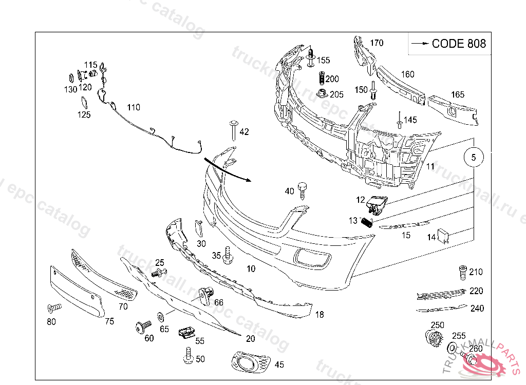 FRONT BUMPER PARTS KIT, A 44851420080709809 TO BE ADAPTED DURING ASSEMBLY OBSERVE WIS 9999QFT164L9000 COLORLESS