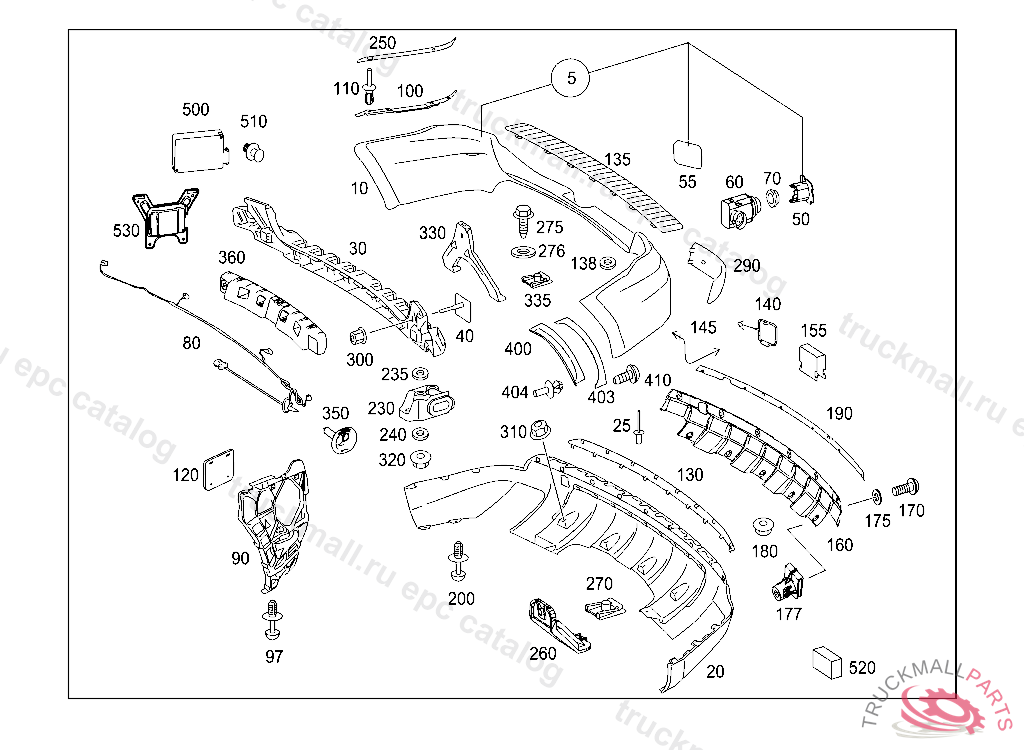 REAR BUMPER PARTS KIT, REAR BUMPER, A 44851420080709809 TO BE ADAPTED DURING ASSEMBLY TO BE PAINTED PRIOR TO INSTALLATION OBSERVE WIS 9999QFT164L9000 COLORLESS