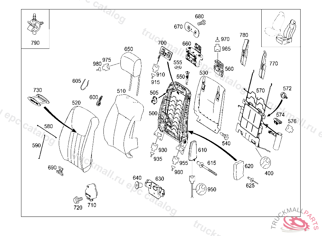 TRUSS BACKREST, RIGHT, Replaced By: A0009105202