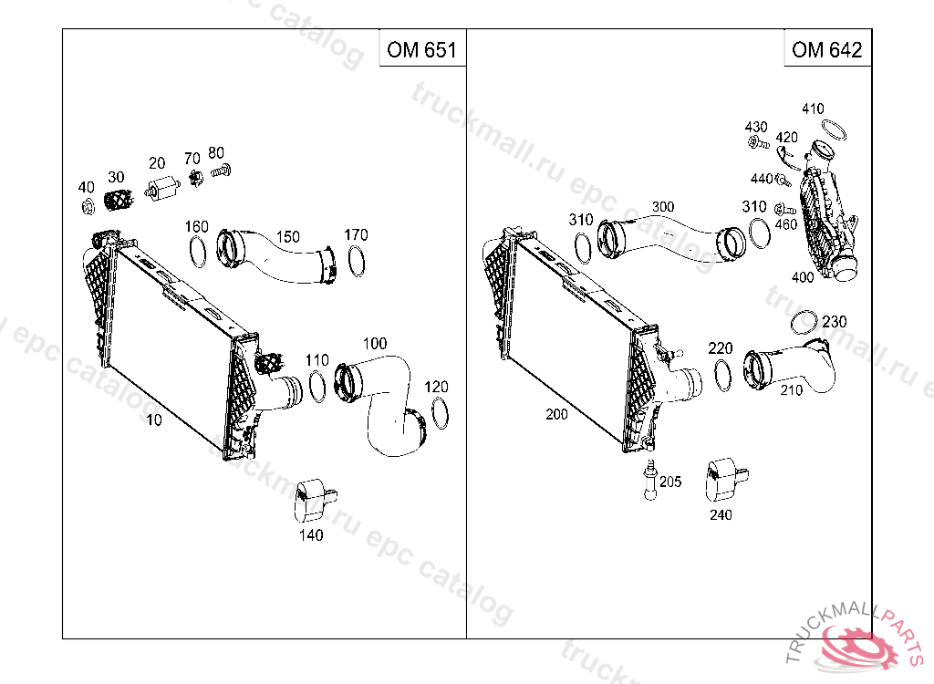 CHARGE AIR COOLER, AIR , FIRST EXHAUST STOCK OF OLD PARTS UP TO IDENT NO. M 20140228 L 20140228 A 20140210, Replaced By: A0995002900