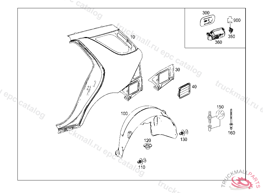 REAR FENDER SIDE PANEL, REAR RIGHT, A 10845620120725