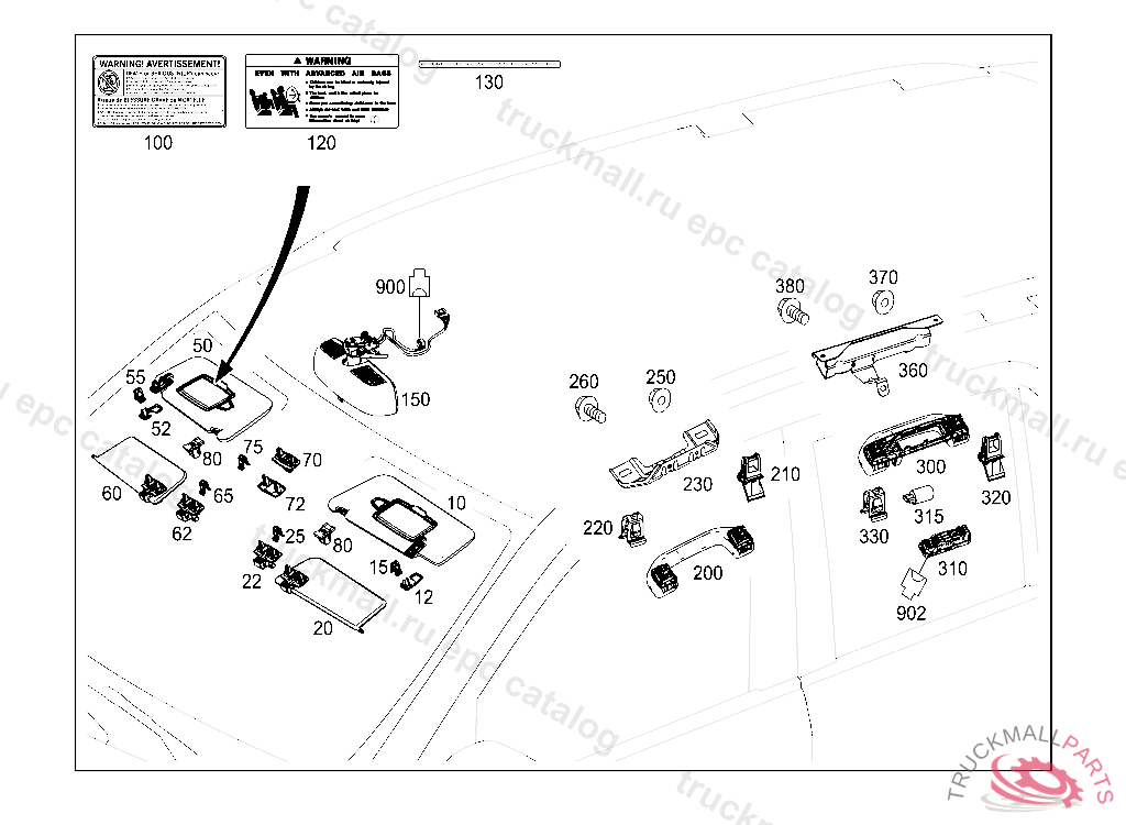 COVER DRAG BEARING SUN VISOR ON THE RIGHT