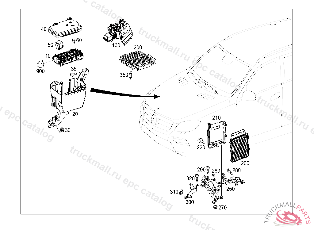 RELAY UNIT EQUIP. COMP., FRONT RIGHT ENGINE COMP. F58, L 00301820131130 M 00301820131130 A 07625020120419