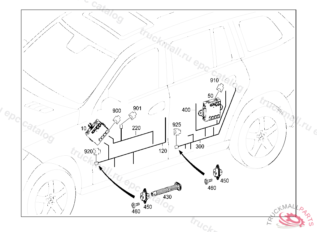 CLUTCH DOOR CONTROL UNIT AT REAR DOOR, LEFT AND RIGHT 3-PIN MQS + 2-PIN SLK2.8,N69/3, N69/4