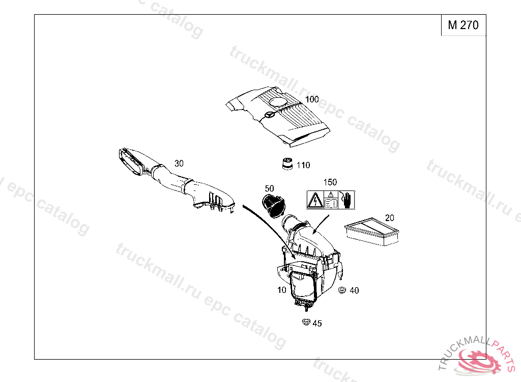 AIR INTAKE HOSE BETWEEN AIR FILTER AND COLD-AIR SCOOP, J 19452620131001 V 00884520140113, Replaced By: A2700900382, +001A2700900601