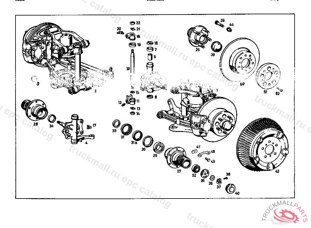 FRONT WHEEL HUB WITH BOLT TO FRONT AXLE WITH DISC BRAKES, FROM FRONT AXLE 002837 FROM CHASSIS 002780 IN ADDITION FITTED ON 002754