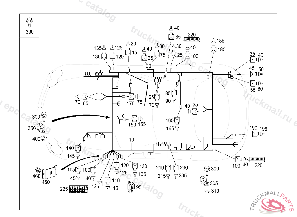 REP.SET CONTACT. CABLE HARNESS , A 394036 X 001165 EXCEPT CODE 807 ALSO INSTALLED IN VEHICLE TO A 449206 WITH CODE 808 A 698507 X 012425 EXCEPT CODE 809 ALSO INSTALLED IN VEHICLE FROM A 698508, X 012426 WITH CODE 808