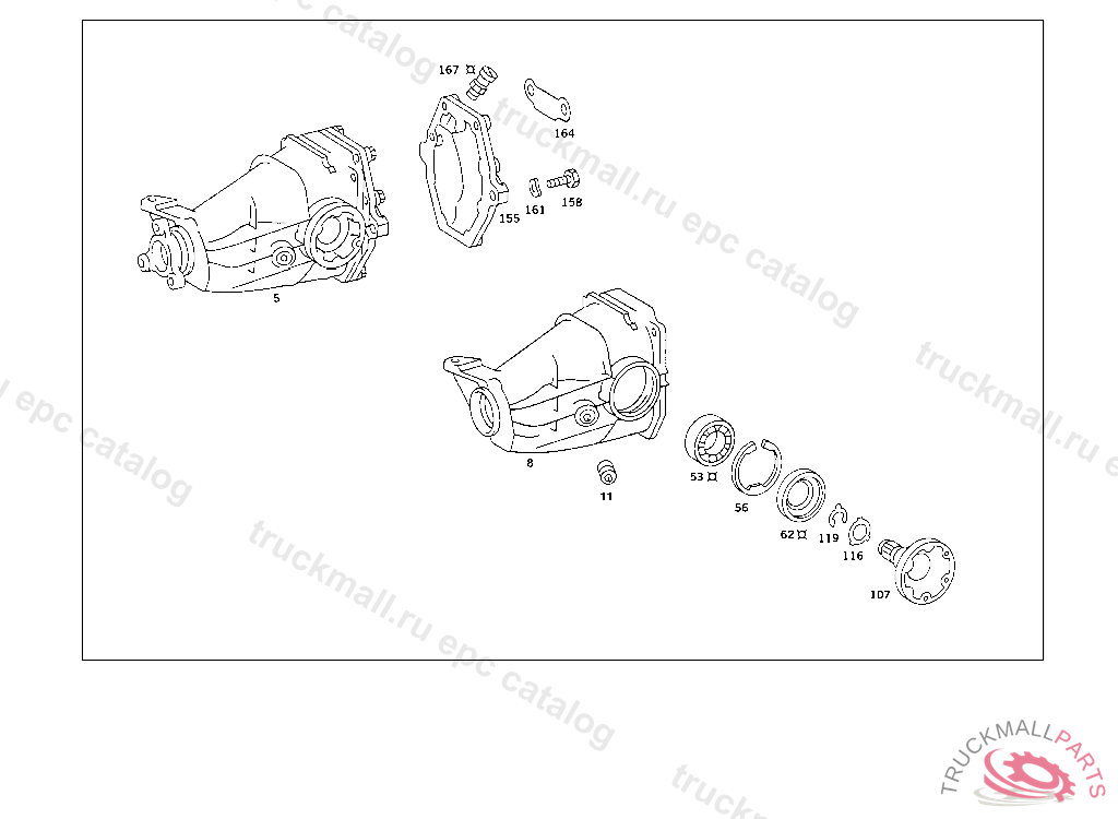 SPACER WASHER AS REQUIRED 1.3 MM, REAR AXLE HOUSING WITH DIFFERENTIAL,LESS SIDE BEARING CABS 003 103239 007 087551 086 007106 093 008992 102,103 240183 105 231729 183 015395 190 021957 193 002093 200 027295 280 000777 283 003632