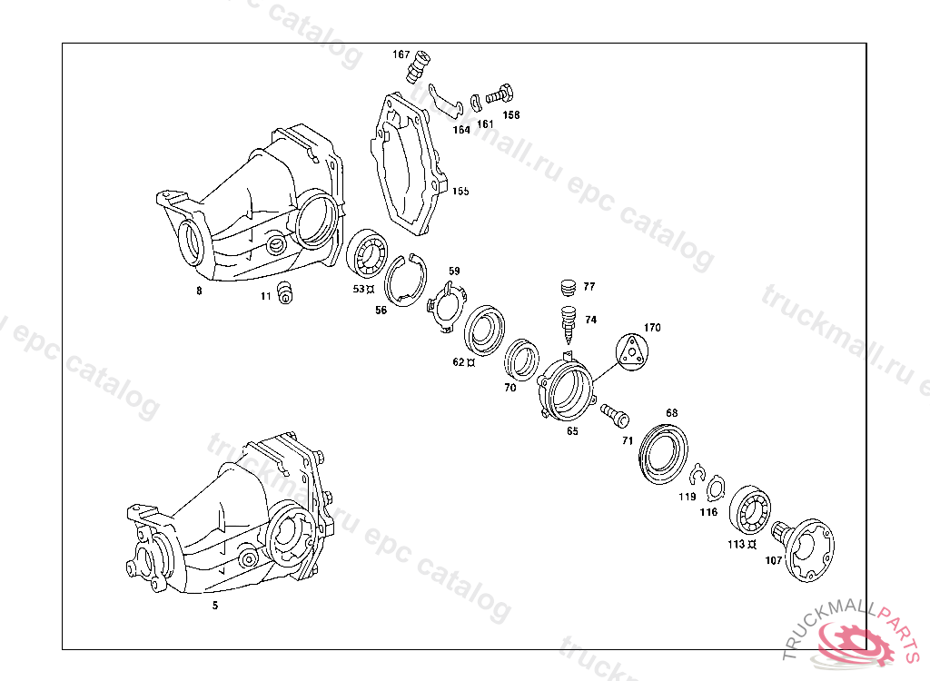 SPACER WASHER AS REQUIRED 0.8 MM, REAR AXLE HOUSING WITH DIFFERENTIAL,LESS SIDE BEARING CABS 003 103239 007 087551 086 007106 093 008992 102,103 240183 105 231729 183 015395 190 021957 193 002093 200 027295 280 000777 283 003632