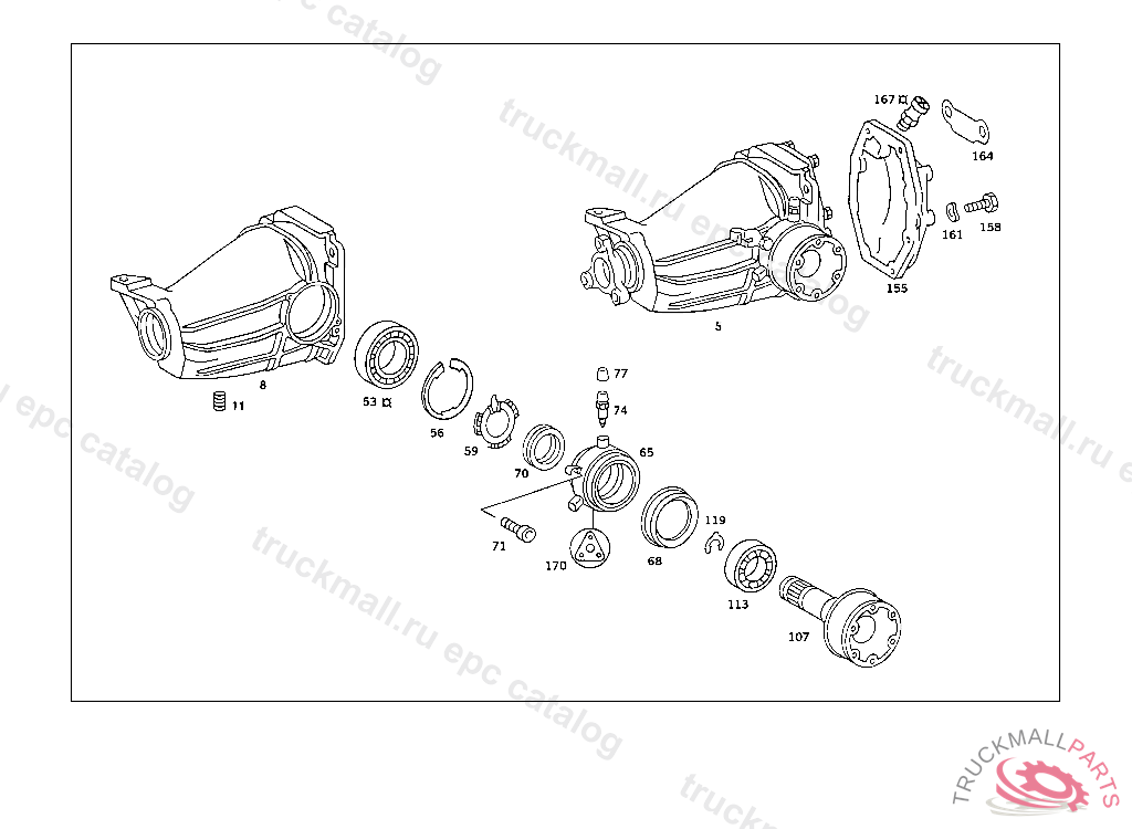 TAPERED ROLLER BEARING RING GEAR BEARING, REAR AXLE HOUSING WITH DIFFERENTIAL,LESS SIDE BEARING CABS 003 103239 007 087551 086 007106 093 008992 102,103 240183 105 231729 183 015395 190 021957 193 002093 200 027295 280 000777 283 003632