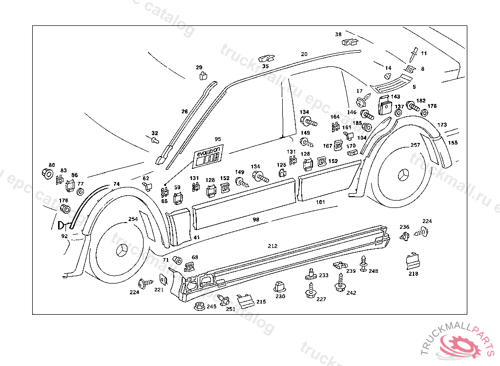 TYPE DESIGNATION PANELLING TO RIGHT FRONT FENDER "EVOLUTION", EVO II3/90
