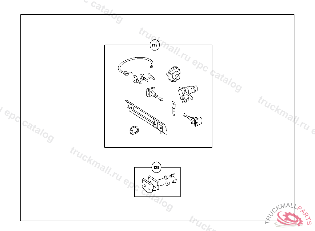 OUTFIT(LOCK,KEY,HANDLE) WITH LOCK FOR GLOVE COMPARTMENT LID, USED WITHOUT CENTRAL LOCKING MECHANISM, STATE COLOR NUMBER WHEN ORDERINGNO.7126