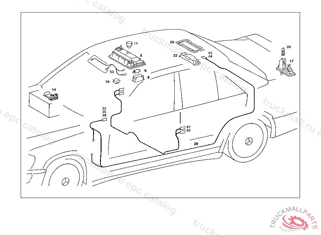 ELECTRIC CABLE INTERIOR LAMP ON FRONT ROOF RAIL, A 372465 EXCEPT FOR A 372469,A 372476,A 372477,A 372483,A 372490,A 372493,A 372505,A 372517,A 372519,A 372525,A 372539,A 372548,A 372572,A 372614, A 373051.ALSO INSTALLED ON A A 371956 F 348474.