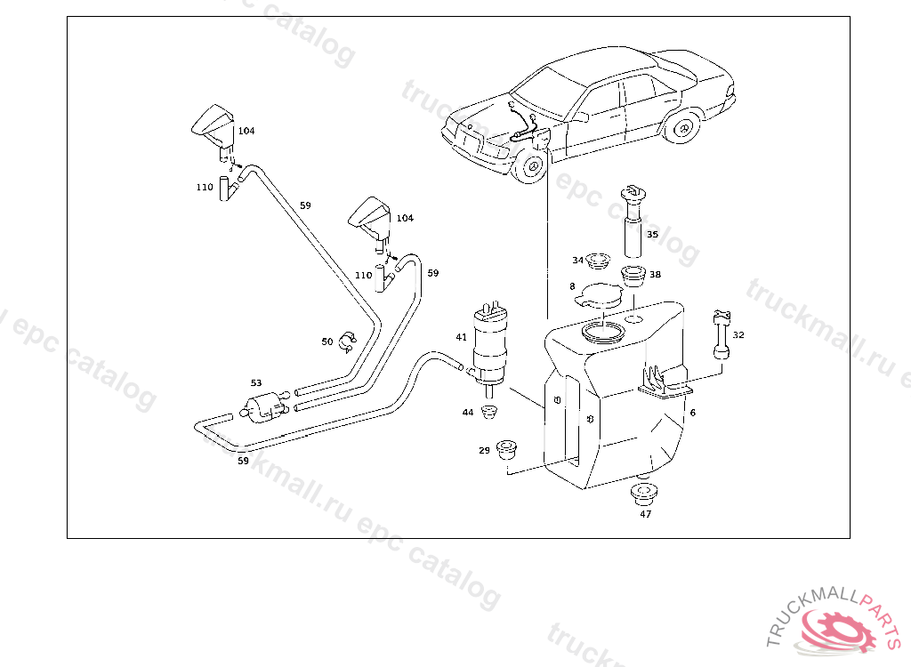PUMP HEADLAMP WIPER/WASHER, AT WINDSHIELD WASHER RESERVOIR, FROM CHASSIS: 107.022 005201, ALSO INSTALLED ON: 005190-005192,005194-005199 107.023 012497 107.024 021804, ALSO INSTALLED ON: 021794,021802 107.025,026,045,046 000001 107.042 004222, ALSO INSTALLED ON: 004213,004215-004218,004220 107.043 013577 107.044 047068, ALSO INSTALLED ON: 047057,047061,047062,047064-047066 UP TO CHASSIS SEE SA 55873/12