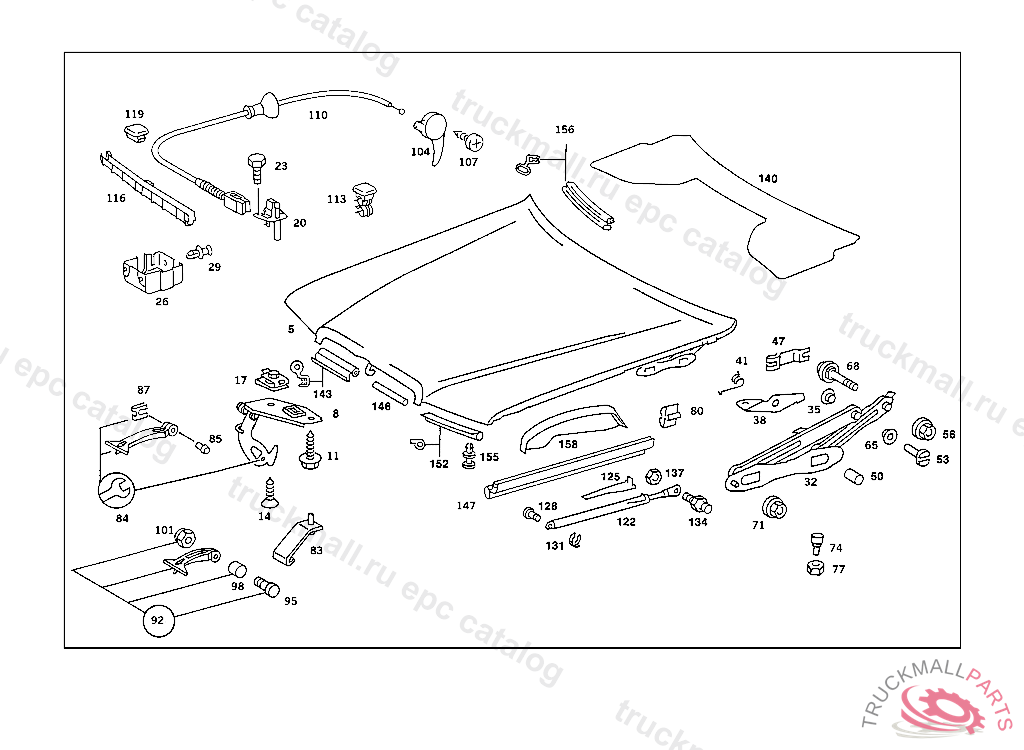 ENGINE HOOD CATCH , EXHAUST STOCK OF OLD PART NUMBERS FIRST UP TO CHASSIS A252302 F155545, Replaced By: A2018800560