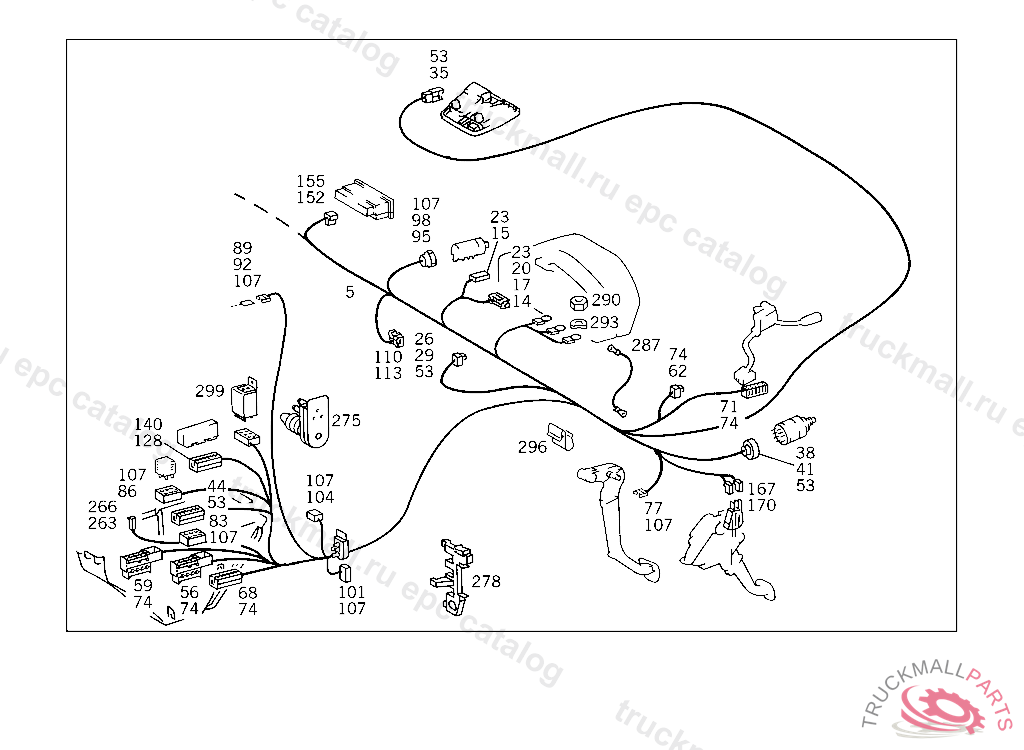 ELECTRIC CABLE COCKPIT CABLE HARNESS,F 049224 A 218852 EXCEPT FOR A 103237 - A 218851 WITH CODE 030 F 190065 EXCEPT FOR F 159752 - F 190064 WITH CODE 030 AS OF IDENT-NO.: FOR HEADLAMP WIRING HARNESS REFER TO TU 54/121, WITH AIR CONDITIONER REFER TO TU 54/485