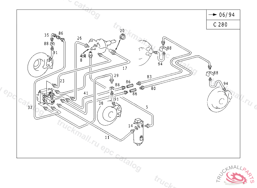 LINE FROM PRESSURE RETAINING VALVE TO RIGHT REAR BRAKE HOSE 3090 MM,P 136599