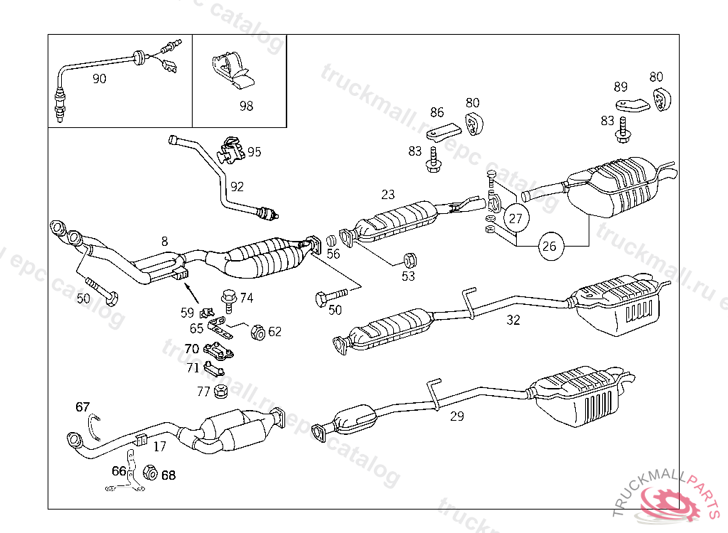 49 EXHAUST SYSTEM - 180 EXHAUST SYSTEM USED ON FOUR-CYLINDER GASOLINE VEHICLES