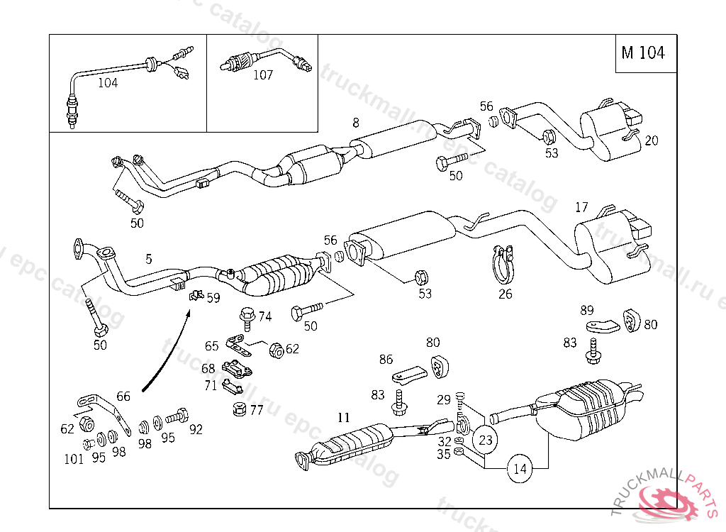 CATALYST FRONT C 36 AMG, A 436535 F 483847 EXCEPT CODE 807 ALSO INSTALLED IN VEHICLE FROM A 436536, F 483848 WITH CODE 806 PART IS ONLY OR ALSO SUPPLIED AS RECONDITIONED PART