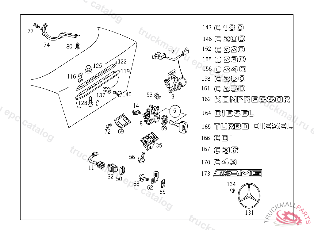 75 REAR LID - 030 REAR LID LATCH-TYPE LOCK, REAR LID ATTACHMENT PARTS IL. 1