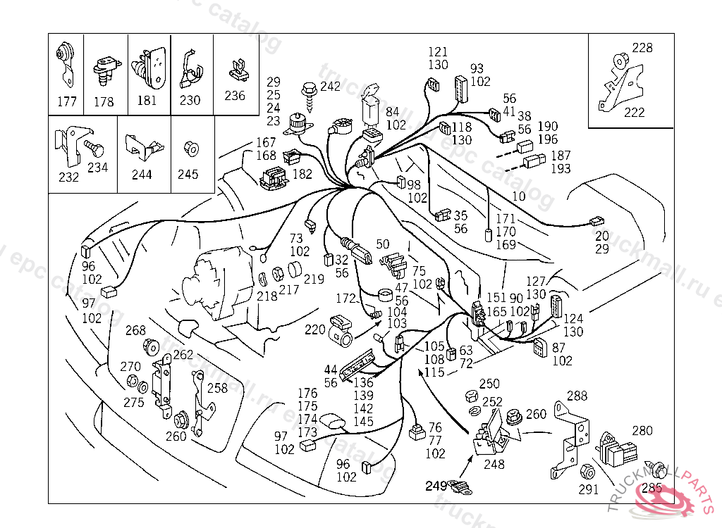 CABLE HARNESS ENGINE CABLE HARNESS,BODY MOUNTED, A 218852 EXCEPT FOR A 103237 - A 218851 WITH CODE 030 F 190065 EXCEPT FOR F 159752 - F 190064 WITH CODE 030 AS OF IDENT-NO.: FOR HEADLAMP WIRING HARNESS REFER TO TU 54/121, WITH AIR CONDITIONER REFER TO TU 54/485