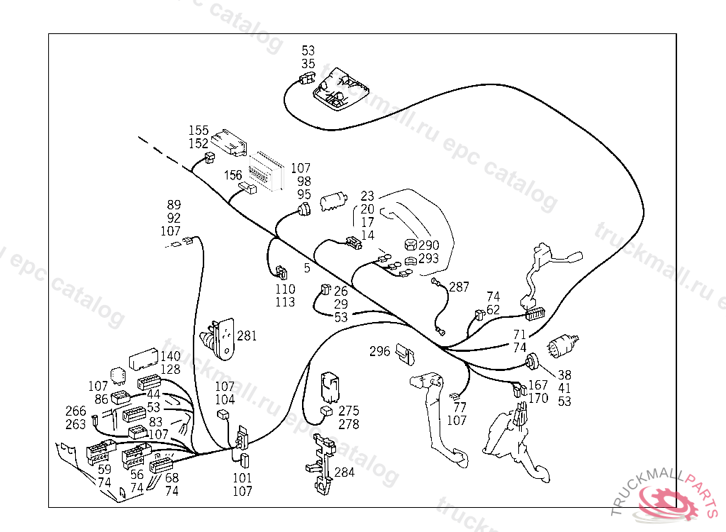 ELECTRIC CABLE COCKPIT CABLE HARNESS USED WITH TEMPMATIK, A 065934 F 049224 A 218852 EXCEPT FOR A 103237 - A 218851 WITH CODE 030 F 190065 EXCEPT FOR F 159752 - F 190064 WITH CODE 030 AS OF IDENT-NO.: FOR HEADLAMP WIRING HARNESS REFER TO TU 54/121, WITH AIR CONDITIONER REFER TO TU 54/485 ALSO INSTALLED ON A 219847