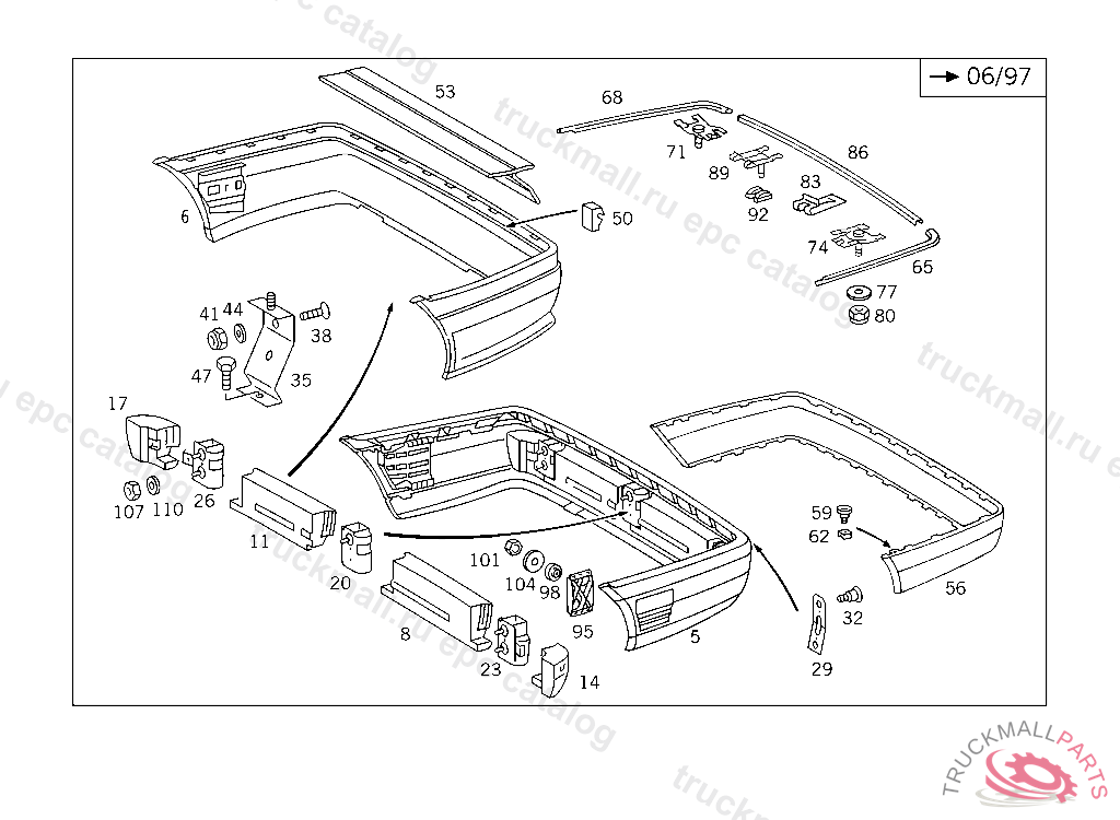 REAR BUMPER FACE BAR LESS PROTECTIVE STRIP ELEGANCE, TO BE REWORKED WHEN USED WITH HITCHING MECHANISM SPECIAL VERSION TO BE PAINTED PRIOR TO INSTALLATION FOR COLOR NUMBERS AND PAINT CODES USED FOR OUTSIDE PARTS,SEE FOOTNOTE 902 F 619720 EXCEPT CODE 808 ALSO INSTALLED IN VEHICLE FROM F 619721 WITH CODE 807