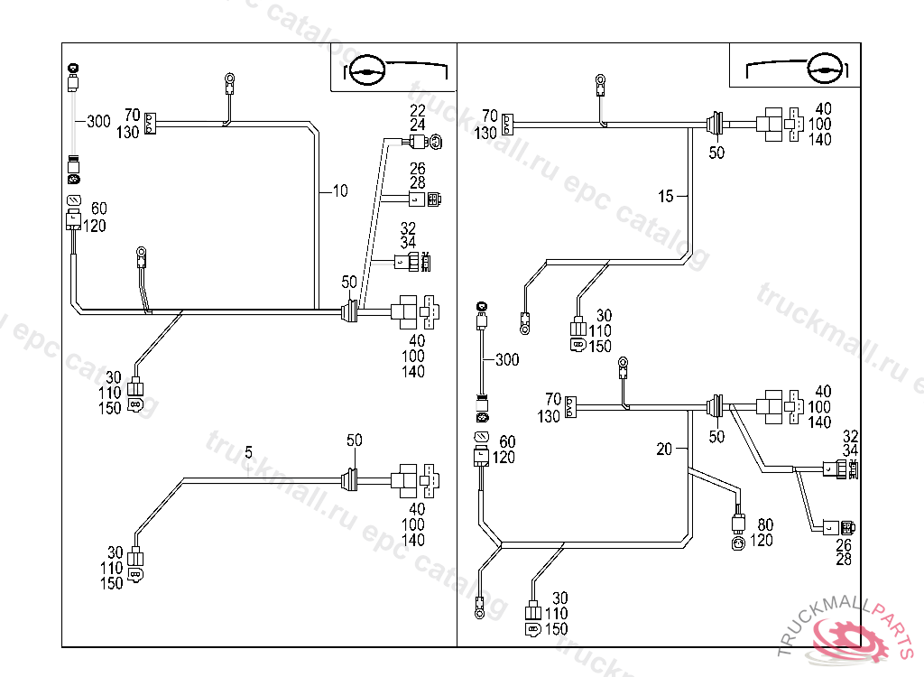 WIRING HARNESS AIR CONDITIONER AND HEADLAMP WIPER/ WASHER, E 01151320020628803 A 40746320020628803 F 32637520020930803 TO BE ADAPTED DURING ASSEMBLY
