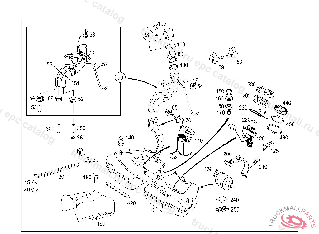 FUEL TANK , ALSO ORDER UP TO IDENT NO: A199237 , F150421 , R033013 1 X A 203 470 19 64 AND 1 X A 203 470 20 64