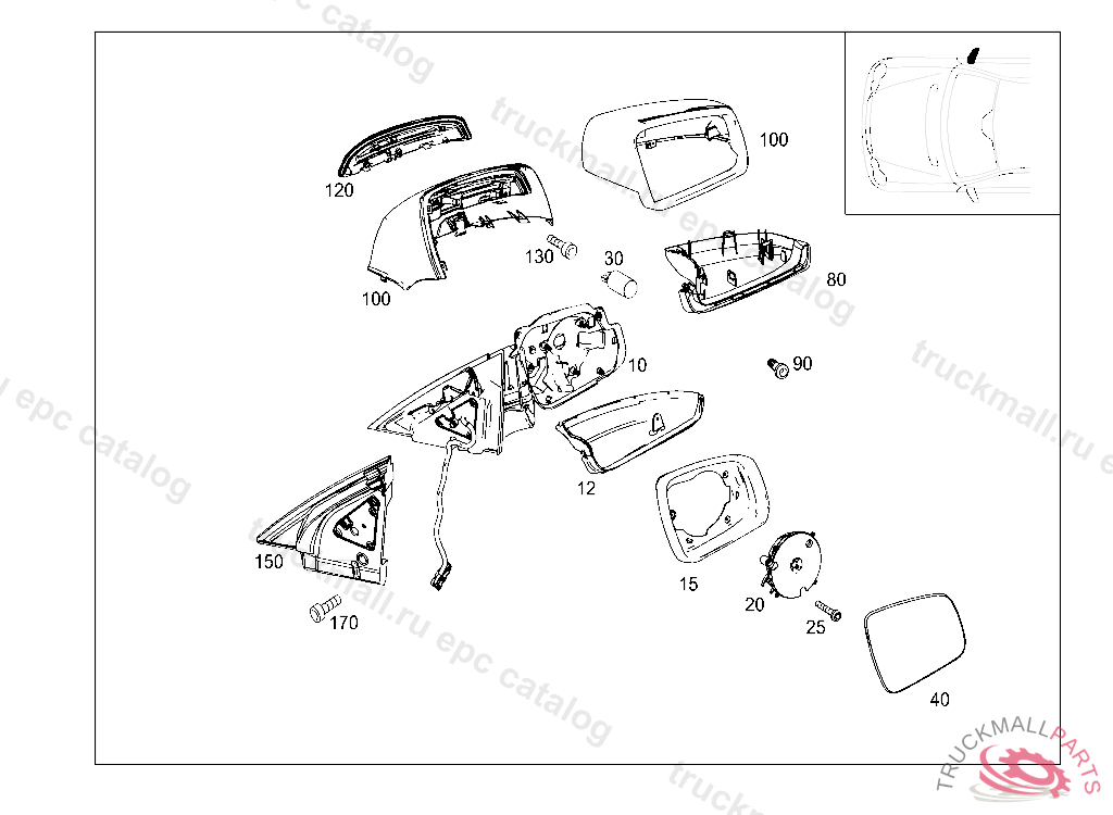 FRAME , CAUTION: WITH VEHICLES WITHOUT CODE 275 (MEMORY PACKAGE), MIRROR MOTOR A 171 820 10 42 MUST ALSO BE ORDERED