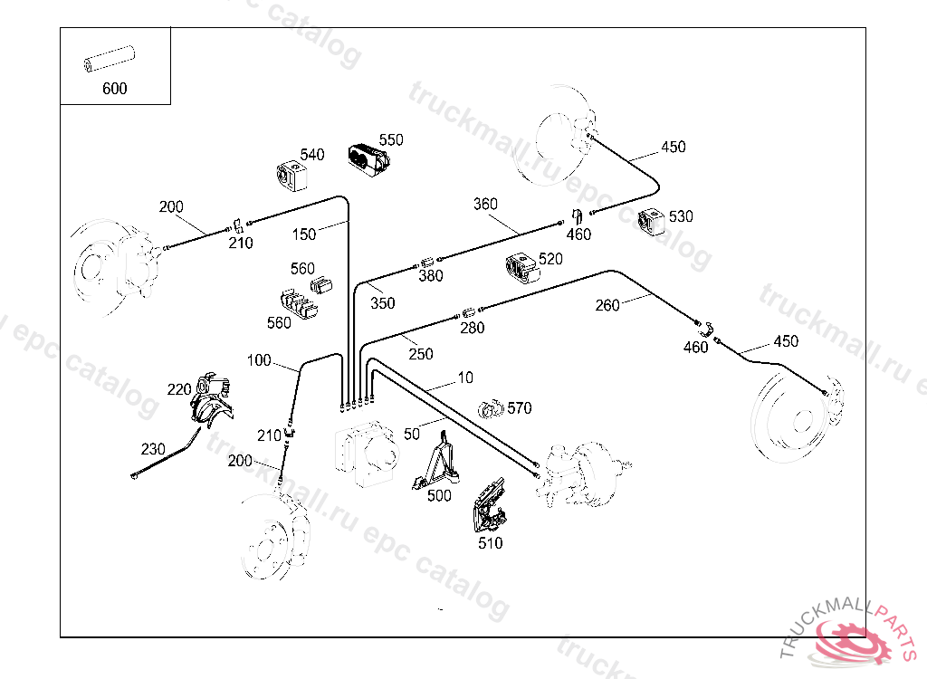 LINE FROM PRESSURE RETAINING VALVE TO RIGHT REAR BRAKE HOSE 3090 MM,P 136599