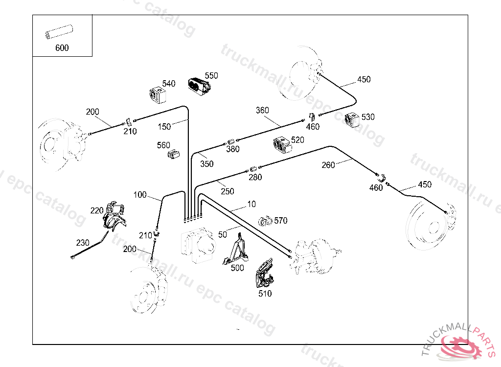 LINE FROM PRESSURE RETAINING VALVE TO RIGHT REAR BRAKE HOSE 3090 MM,P 136599