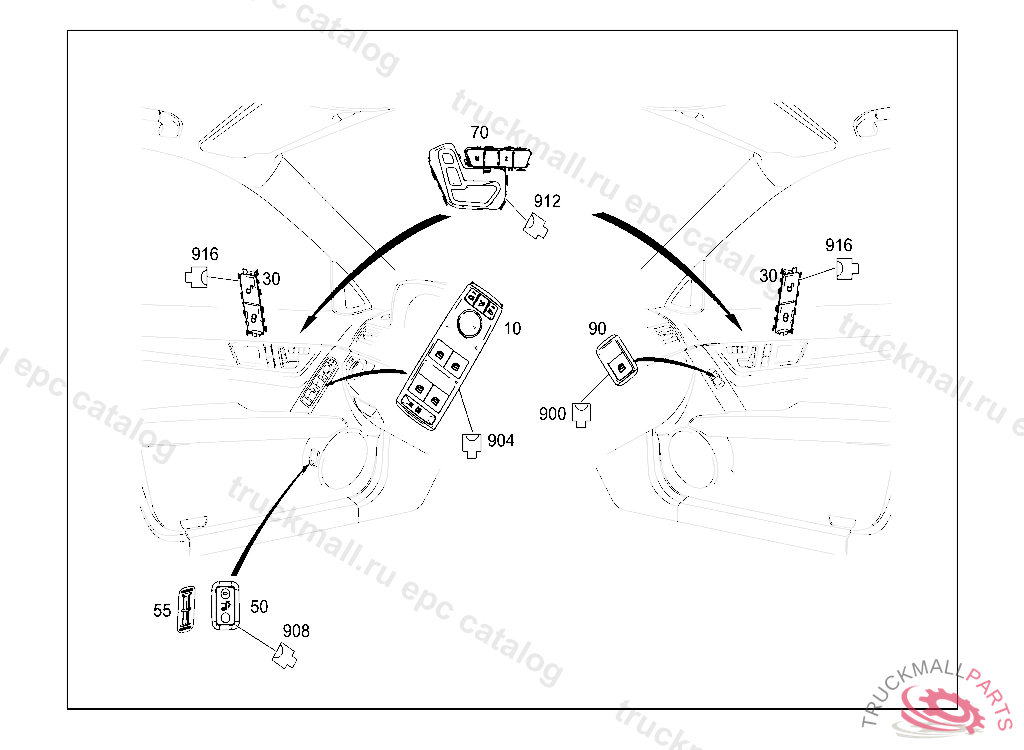 PUSH BUTTON SWITCHES FOR CO-DRIVERS DOOR, 9107QFT204A1030 MIDSOFT BLACK, Replaced By: A2048700081