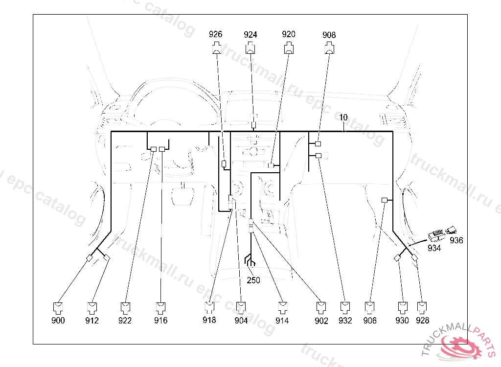 WIRING HARNESS COCK PIT WIRING HARNESS, STATE IDENT NO. WHEN ORDERING THE CORRESPONDING SPECIAL EQUIPMENT IS CONTAINED IN THE WIRING HARNESS ACCORDING TO THE VEHICLE PRODUCTION NUMBER