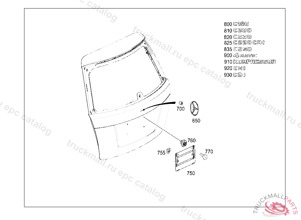 TYPE DESIGNATION AT REAR PANEL DOOR C250