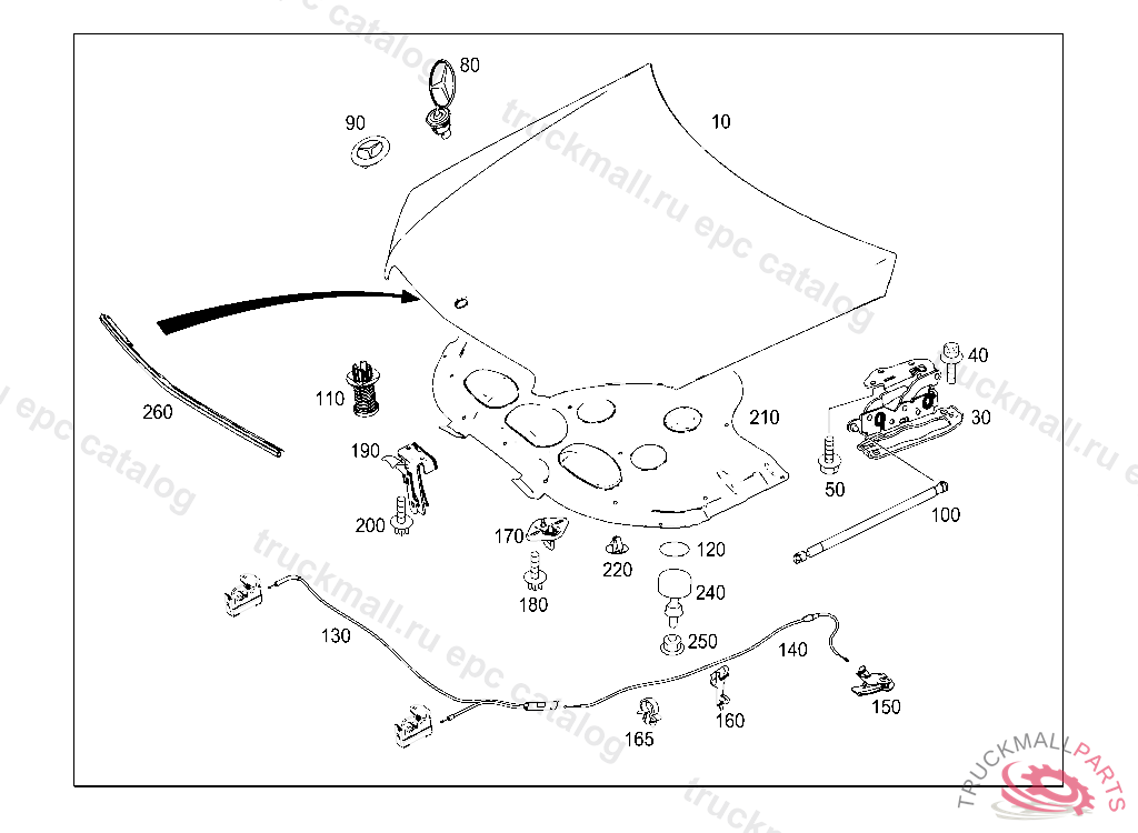 ENGINE HOOD RELEASE CABLE FRONT, A 33423020090911 L 03484320090930 V 00176520090930 F 40323720090831 L 10000020090901, Replaced By: A2048800859