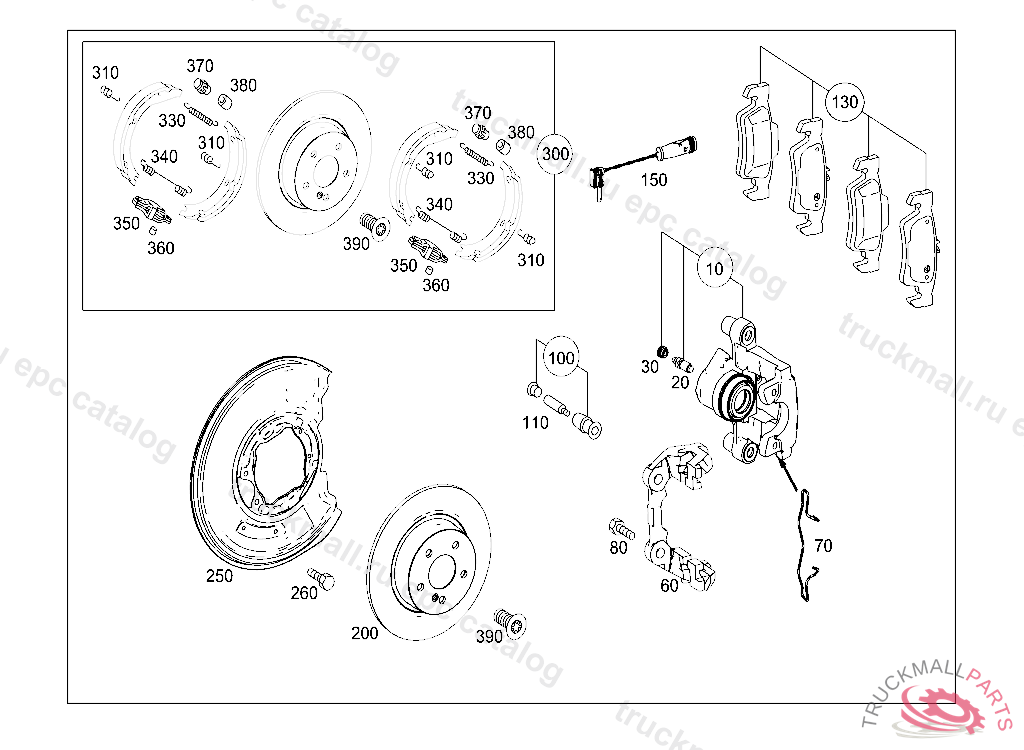 TS DISK BRAKE PAD PARTS KIT, FOR BRAKE CALIPER MADE OF CAST IRON, WHEN SELLING BRAKE LININGS TO END USERS/DESK BUYERS THE A 203 005 25 99 IS TO BE HANDED OVER FREE OF CHARGE