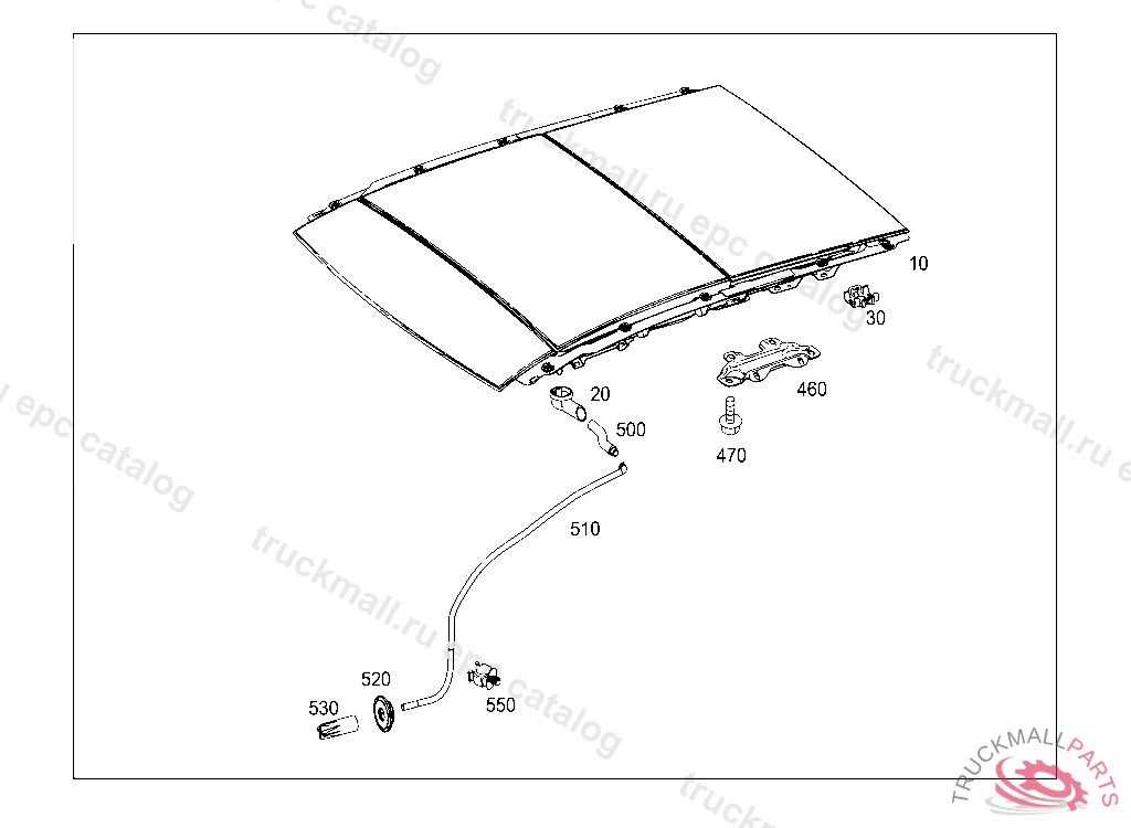 OUTLET PIPE AT PANORAMIC SUNROOF, FRONT