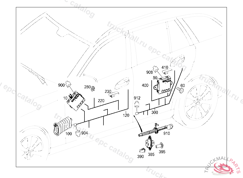 ELECTRICAL WIRING HARNESS LEFT REAR DOOR, DOOR SEPARATION POINTTO CONTROL UNIT AND CONSUMER, ADAPT WIRING HARNESS FOR ASSEMBLY, Replaced By: A2044401805