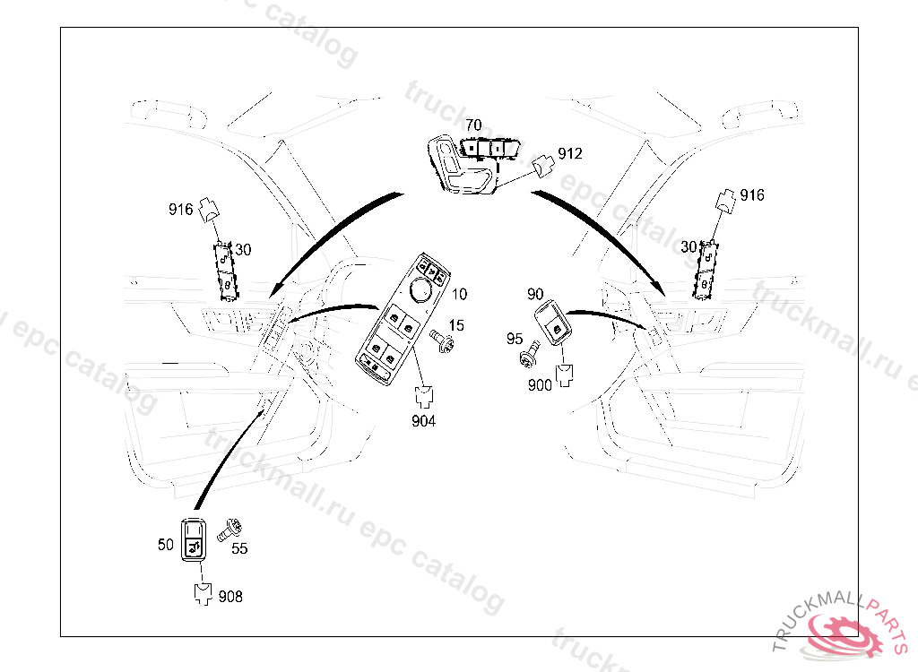 SWITCH BLOCK FOR DOOR RIGHT, 9107QFT246A1030 MIDSOFT BLACK