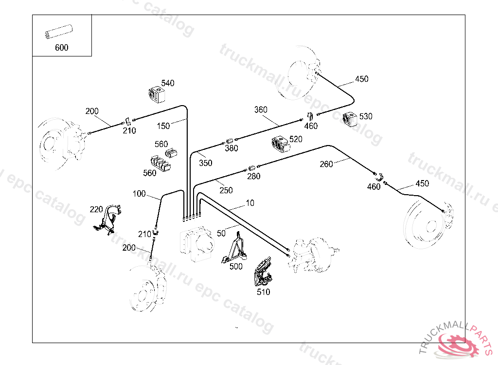 LINE FROM PRESSURE RETAINING VALVE TO RIGHT REAR BRAKE HOSE 3090 MM,P 136599