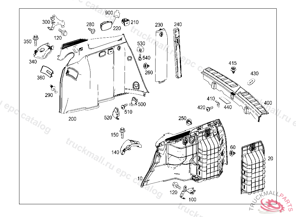 PANELING LOADING COMPARTMENT,RIGHT, 9G08QFT204A0195 BLACK, Replaced By: A2046907841