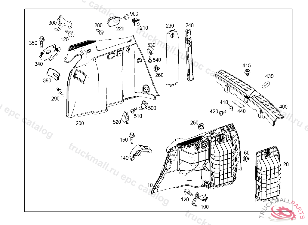 PANELING LOADING COMPARTMENT,RIGHT, 9G08QFT204A0195 BLACK, Replaced By: A2046907841