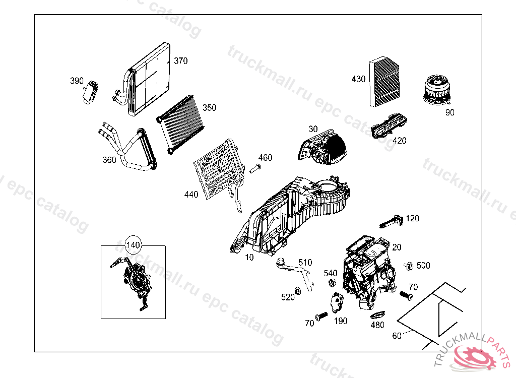 83 HEATING AND VENTILATION - 035 HEATER AND EVAPORATOR HOUSING WITH BLOWER AND WIRING HARNESS